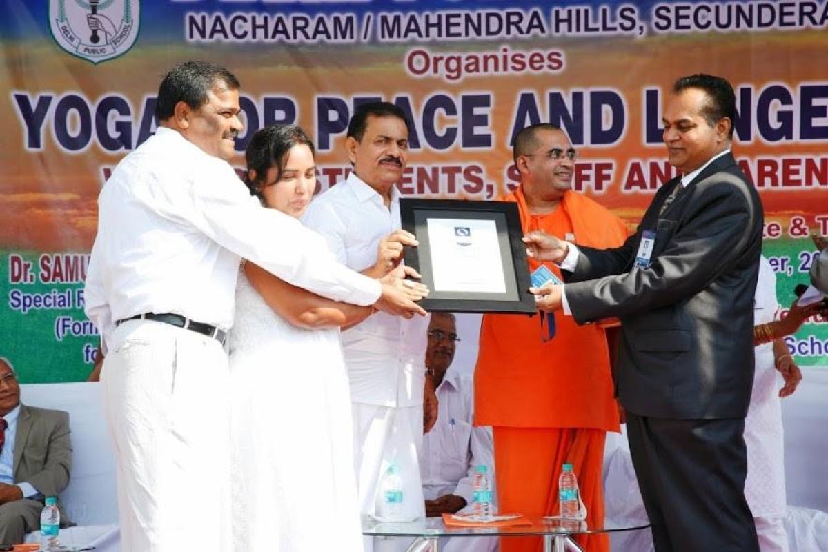 This remarkable achievement reflects the importance of yoga in nurturing both mind and body while inspiring future generations towards a balanced life It has been adjudicated by Dr R Vijaya Durga and Dr K Pavani at Hyderabad India and is hereby recognized as a proud milestone of Indian excellence It serves as an enduring inspiration for schools and communities to embrace yoga as a path to peace and well being.
