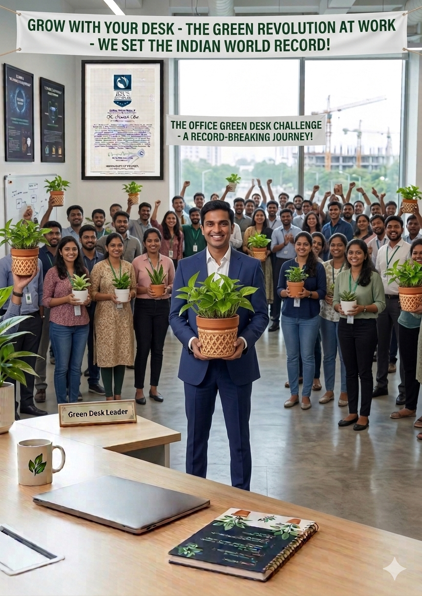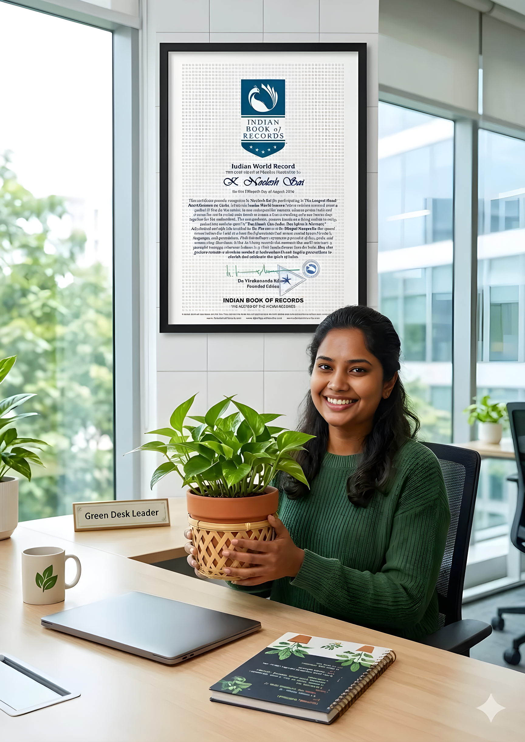 A live plant on every desk isn’t just decor, it’s a silent companion that purifies the air, reduces stress, and boosts focus. The Office Green Desk Challenge transforms workplaces into mini-forests, showing that productivity and sustainability can grow hand in hand. Together, corporates can set a record by turning ordinary desks into living, breathing spaces of wellness, and be honored with the Indian World Record.