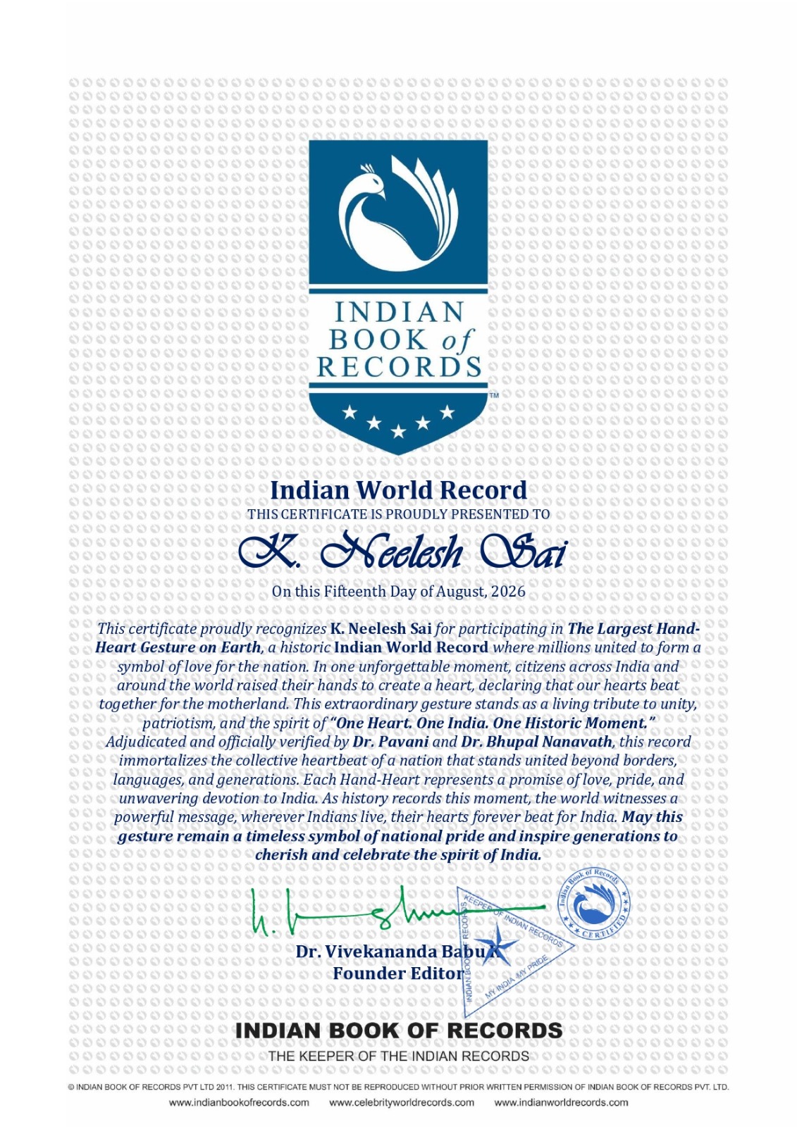 Email: info@indianbookofrecords.com