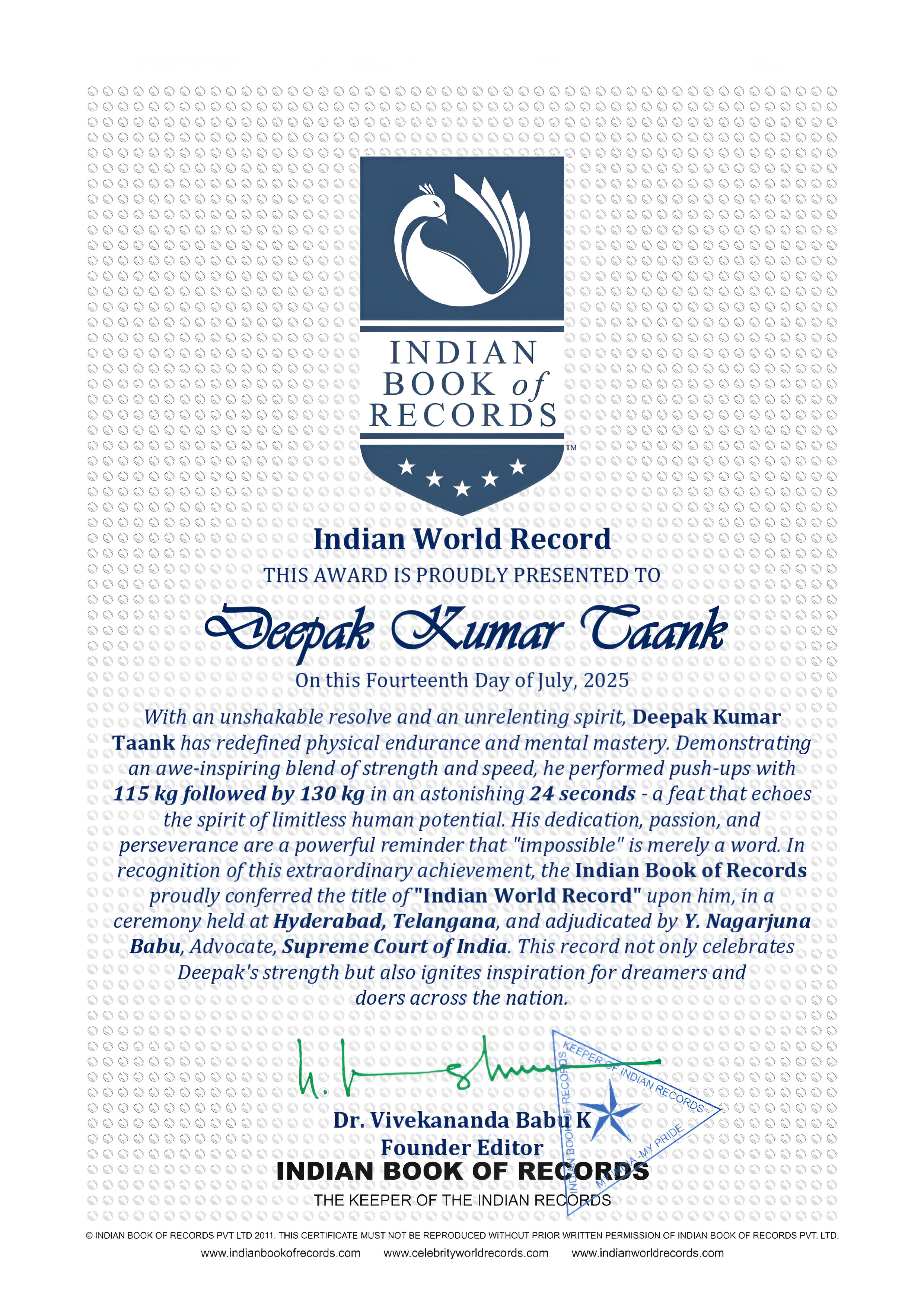 A devoted family man, he draws strength and inspiration from his mother, Mrs Phoolwati Taank, and his wife, Mrs Reema Rani Taank, whose unwavering love and encouragement have been a constant source of support throughout his journey Their presence has been the pillar on which he has built his personal and professional life Together, they have created a home filled with warmth, values, and togetherness Deepak’s bond with his family remains the driving force behind his dedication to every endeavor.
