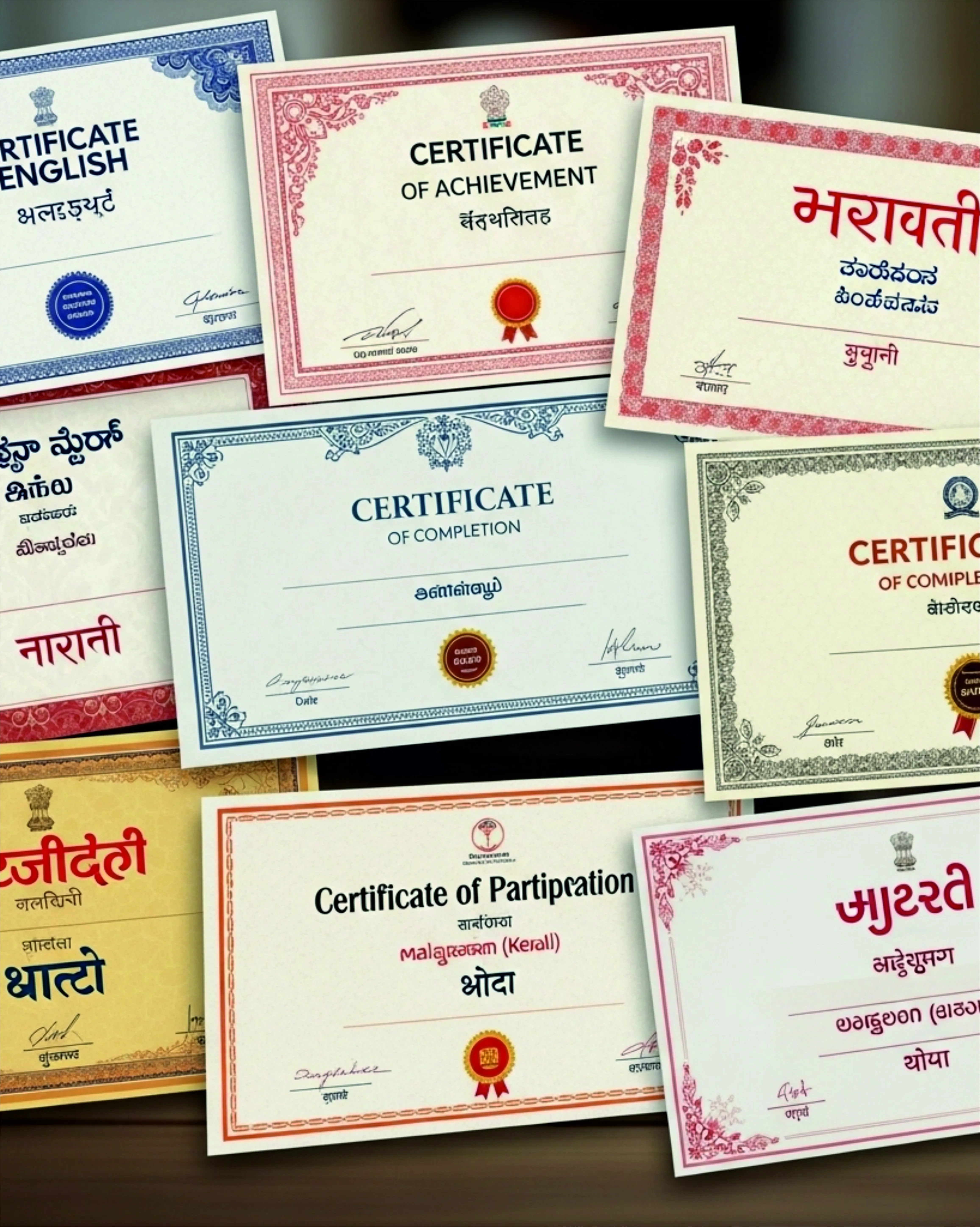Celebrate your achievement with regional-language certificates that build trust, boost credibility, and let your success speak to every audience.